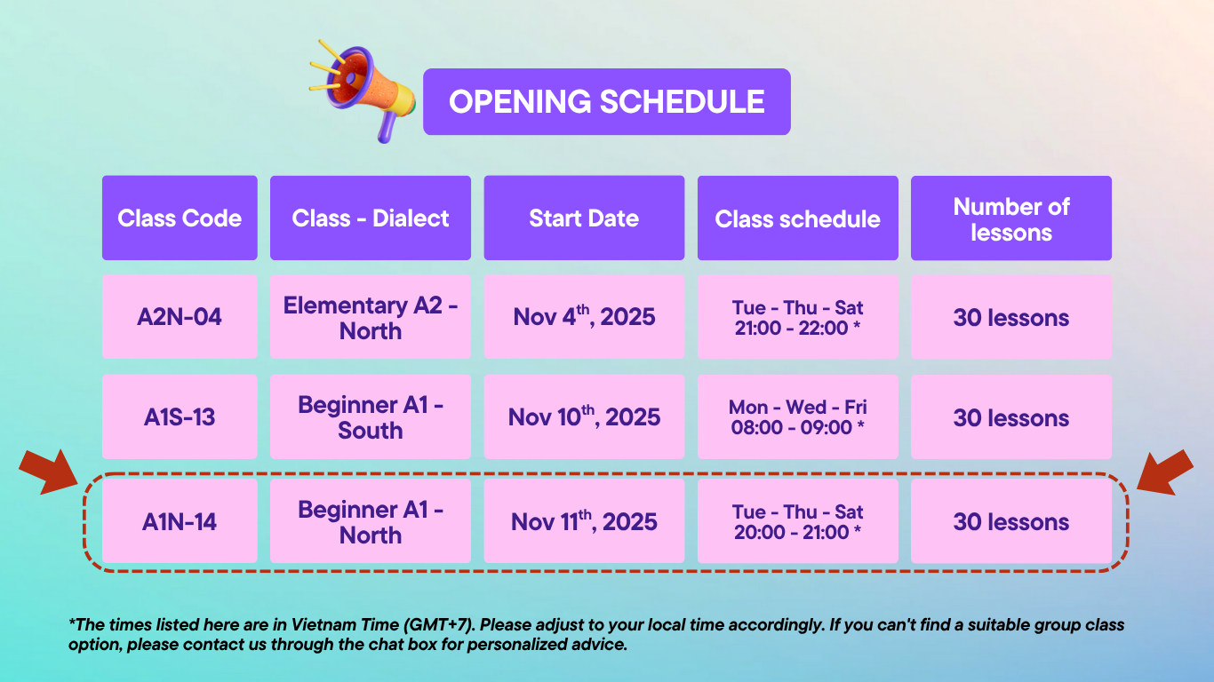 Vietnamese for Beginners A1 – Northern Dialect (A1N-14) Start Time 20:00 11 November 2025 Finish Time 21:00 13 January 2026 Address Online via Zoom Share: Previous Event Elementary Vietnamese A2 – Southern Dialect (A2S-02) Next Event Vietnamese for Beginners A1 – Southern Dialect (A1S-13)